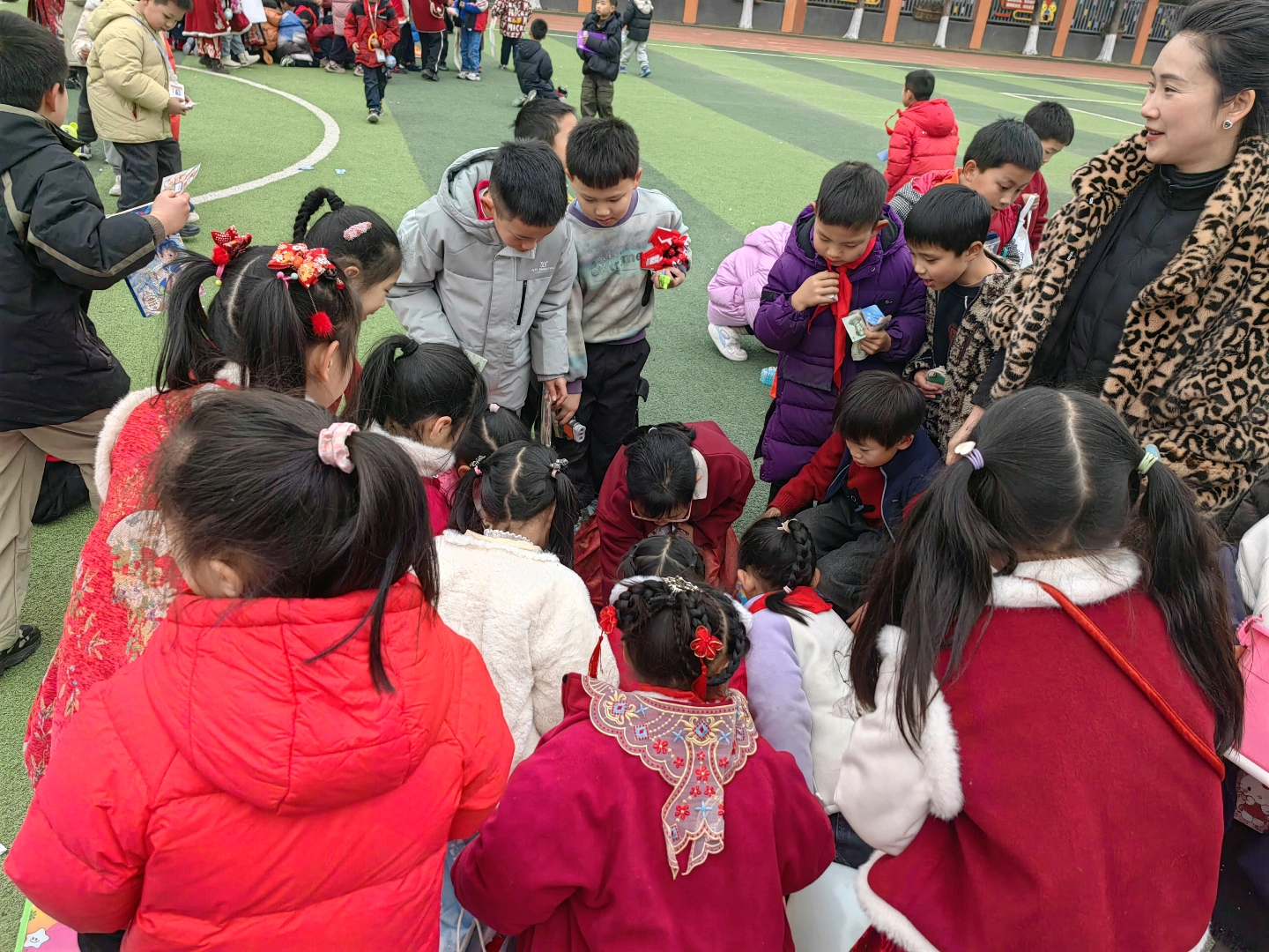 穿的工作:(看流流怎么和老师斗智斗勇) 锻炼孩子的手眼协调能力和专注力,同时在穿的过程中感知各种材料的软硬及形状。 在端珠子时,刚开始不小心把珠子倒出来了,然后又顺势把其他盘子里的材料也倒了。今天内心挣扎了几分钟,没有发脾气,看我还是很坚持,自己也就平和的把玩具收起来了。 运动时间,流流和哥哥姐姐们玩《蔬菜蹲》的游戏。 哥哥准备跳蚤市场要卖出的商品,大卖大卖!